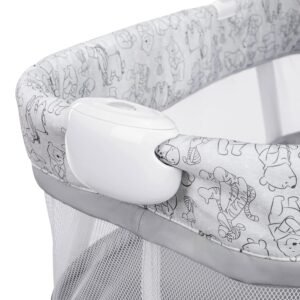 The Disney Baby Winnie the Pooh Slumber Party Soothing Bassinet is designed to provide comfort, safety, and gentle soothing for your baby’s peaceful sleep. Featuring adorable Winnie the Pooh designs, this bassinet comes with soothing vibrations, calming melodies, and soft lighting to help lull your baby into a restful slumber. The mesh sides ensure breathability, while the sturdy frame offers stability and security.